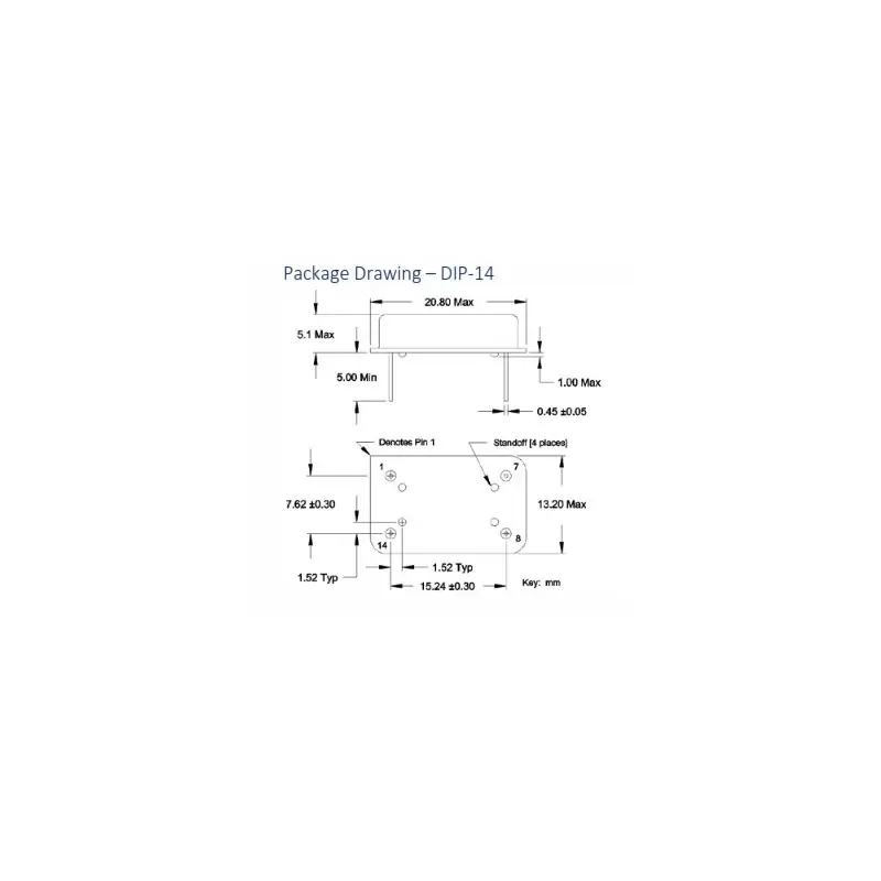 DIPPackage :DIP-14 تعداد پایه :4نوع عملکرد(Function Type) :Crystal Oscillator ابعاد (mm) :20.2 x 12.8مشخصات نوسان سازفرکانس نوسان (MHz)16.384